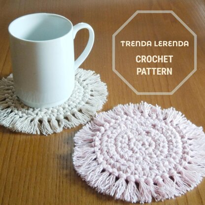 It is a crochet coaster with recycled cotton yarn, in a circular shape and decorated with fringes around it. A modern style with a boho or rustic Nordic look, ideal to decorate your most chic tables. Level: beginner. Time of realization: 1-2 hours. Available languages: Spanish and English (American terminology).