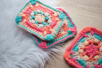 - finished and blocked granny square measures 5″x5" - written in US crochet terms - skill level – intermediate - #4 aran weight yarn required - size US H/5mm crochet hook required