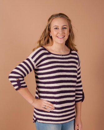 The Boisfort Top is a ¾ length sleeve, bottom up construction sweater made in one piece. Designed with stripes and a button detail on the sleeve this is an ideal everyday sweater. This sweater is made with sport weight yarn making it the ideal medium weight sweater for spring and fall. The intermediate crocheter starting out making garments will find this pattern just right with the double crochet stitches and the simple color changes.