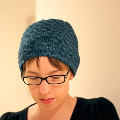 Swirling Knit and Purl Stitch Hat Simple swirl hat knit in the round with ribbed hem and swirling pattern. Quite easy to knit, and you can easily adapt it to other sizes or weights of yarn.