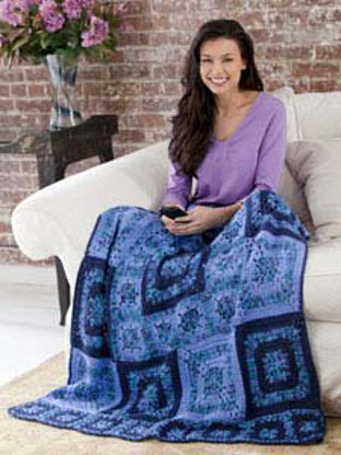 Bold Blues Throw in Caron Simply Soft and Simply Soft Brites - Downloadable PDF