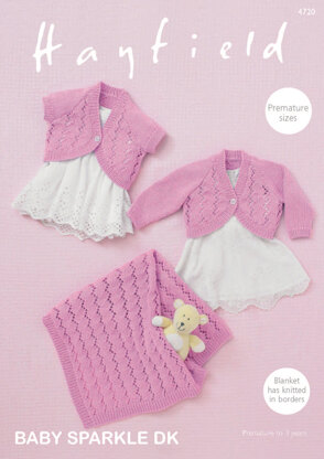 Boleros and Blanket in Hayfield Hayfield Baby Sparkle DK - 4720 - Downloadable PDF is a Intermediate Knitting pattern by Hayfield, available as a Downloadable PDF and includes instructions in English. Super fun to make, this pattern could be your next masterpiece!