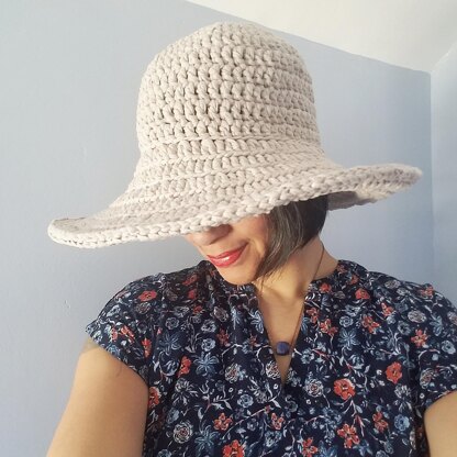 Crochet Pattern for Bolster Brim Sunhat using Paintbox Yarns Recycled Ribbon.