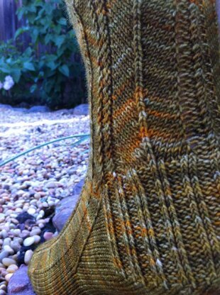 A top-down, textured sock inspired by Tolkien's character Tom Bombadil.