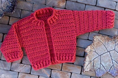 Materials: Crochet hook in size J/6mm Size 4/Aran/Worsted weight yarn -approx. 140 yards for 3/6 month -approx. 212 yards for 12 month -approx. 365 yards for 2/3T -approx. 450 yards for 4/5T -approx. 500 yards for 6/8 -approx. 675 yards for 10/12 -approx. 740 yards for 12/14 Zipper (optional)