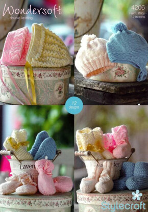 Bonnets, Cap, Helmet, Bootees and Mittens in Stylecraft Wondersoft DK - 4206 - Leaflet is a Knitting pattern by Stylecraft, available as a Leaflet and includes instructions in English. Super fun to make, this pattern could be your next masterpiece!