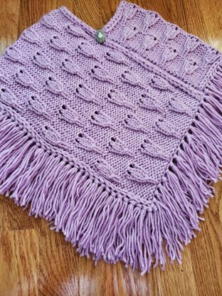 This child's poncho pattern is written for sizes 1-10. The poncho pattern is a late beginner to intermediate level. The pattern consists of a botanical design which is very straightforward. An I-cord edging is used which makes for nice finished edges. Techniques used include basic stitches, seaming and an I-cord edging. Two strands of worsted weight yarn are used.