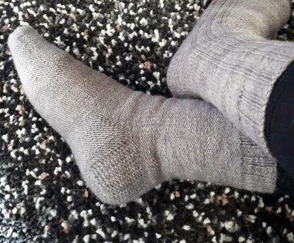 The heel flap & turn are worked with a reinforcement pattern, arranged so that the floats from the slipped stitches lie on the knit side of the sock. If you wear them knit side out, the pattern is fetching & unusual.
