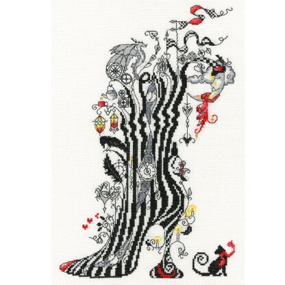 Your kit contains: 16 count white Zweigart Aida, pre-sorted stranded cottons, metallic threads, needle, stitch diagram and instructions. Finished size 19cm by 28cm. This kit uses full cross stitches, fractional stitches and back stitch.