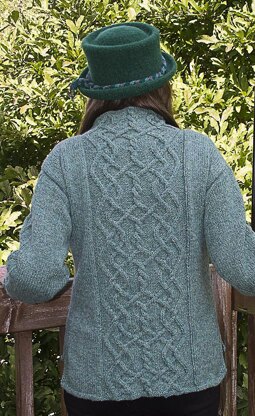 Because this is a unisex design, yardage will be greater for a very tall man, but for the largest women's size, 1800 yards should be adequate. The sweater will also fit teens, as well as men and women. The cable motif is both written and charted.