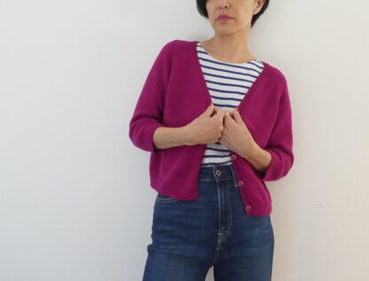 Bougainville is a lightweight V-neck raglan cardigan for warmer months, perfect to throw on your favorite tops or dresses, or to style with high-waist bottoms.