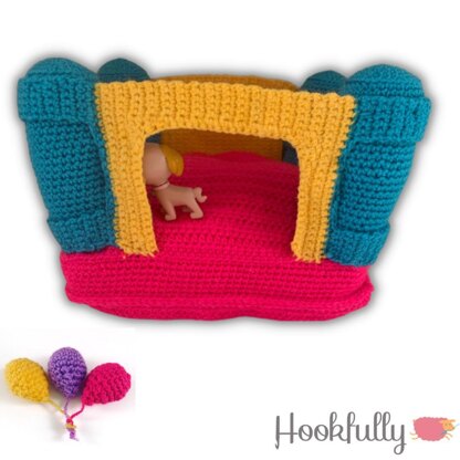 The pattern will help you create a bounce house that is actually bouncy and will fit any figures up to 3” tall. The overall size is H 19cm x W 27cm x L 26cm