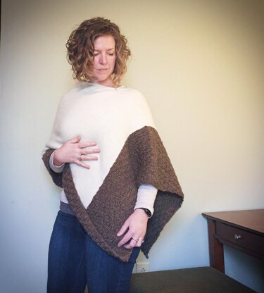Words cannot describe how sumptuous this poncho is. The beautiful undyed Bare Preciosa is by Knit Picks. It is so soft and cozy, like curling up in a nest of chinchillas! A textured border in Wool of the Andes, adds contrast making this neutral knit good anytime of year.