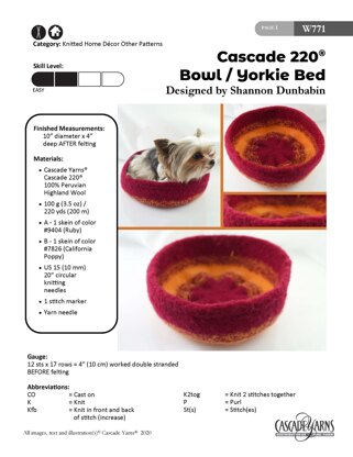 Bowl/Yorkie Bed in Cascade 220® - W771 - Downloadable PDF