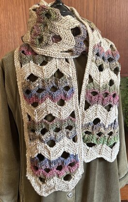Love the gutsy feel of these two new Noro yarns - the tonal Malvinas and self-striping Viola! This is a zigzag pattern with strategic bind-offs to create the openings. You can have the side border or leave it off, as you wish! Enjoy!