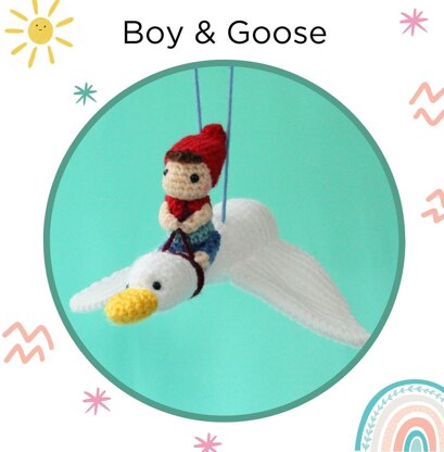 Finished size: Goose; 20cm long, boy, 7cm sitting height Yarn Small amounts unless specified otherwise. • DK (8-ply) [A] 25g white