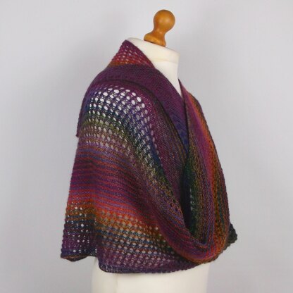Brackenreid is a slightly assymetrical shawl/scarf, worked sideways on the bias, using garter stitch and an eyelet pattern.