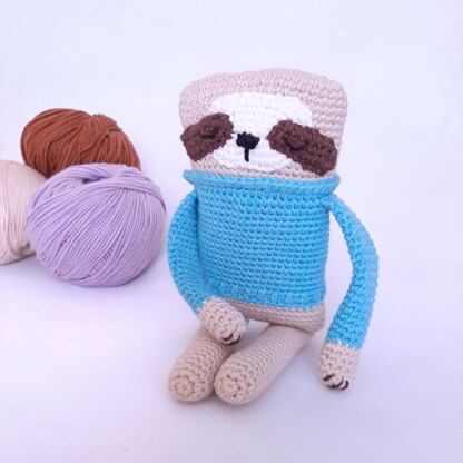 Materials Size 3/light weight yarn I used Madame Cotton by Madame Tricote Paris Main color: 76 yards / 70 meters. Sweater color: 61 yards / 56 meters. White: 6 yards / 6 meters Dark brown: 6 yards / 6 meters 2.5 mm crochet hook Fine yarn or embroidery thread for eyes and nose Scissors Yarn needle Stitch markers Fiberfill or toy stuffing