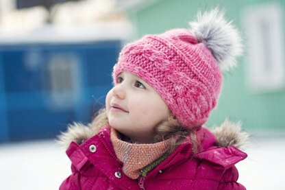 Braiden is a chunky weight hat with cabled brim and a pompom.