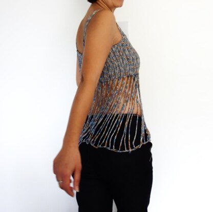 This Fringed Bralette Top is an easy and quick project, worked sideways, easy adjustable for any size and length. Use a shiny yarn and you will get a unique party top that will turn heads. Or choose a matte cotton yarn for a more casual look and line it with a camisole underneath and you can pair it with jeans or wear it as a beach cover up.