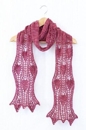 The Brambasi scarf / stole is an ode to summer and colorful fruits. Its name is an Old Frankish word meaning Raspberry. Brambasi features a fun pattern forming berries spaced by breathy lace. Its wavy edges and edgings with a flare playfully top it off. The amazingly soft and vibrant yarn with lots of drape makes it the perfect accessory for long summer evenings. Knit either a scarf or a stole, and wrap yourself in dreamy softness all summer!