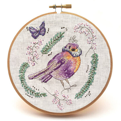Need to give someone some serious side eye? Have no fear, Brave Sir Robin is here (and no, he's not going to run away). This cross stitch pattern features this very royal looking robin with his glorious Elizabethan ruff. Based on an original watercolour and ink pen illustration, delicate backstitch and French knots add texture and detail to this pattern. This pattern also comes with optional printable speech bubbles (some sassy, some sweet, and some blank for your own phrases) so you can really make Brave Sir Robin say what you want depending on your mood. The pattern comes with a full black and white pattern and a full colour pattern. Model stitched over two on Zweigart 28ct Cashel linen (Antique White) and uses French knots.