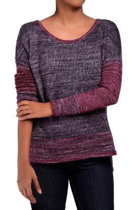 A quick knit, Breathe Easy is a boxy drop shoulder pullover worked from the bottom up. The body is provisionally cast on at the high hip and worked in the round till the armholes. The provisional sts are later picked up and the front and back are worked flat separately creating the side slit, and the back is worked longer than the front. While the body has about 10” of ease worked in, the sleeves are close fitting, striped and full length. Sleeves are worked in the round, down to the cuff.
