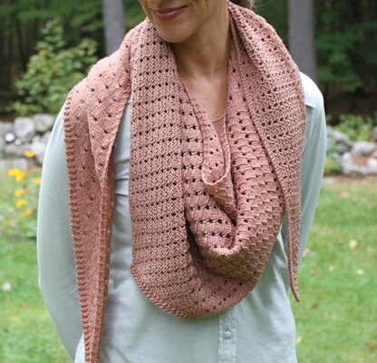 Brida Shawl is worked from tip to long edge and forms an asymmetrical triangle. You can easily make the shawl larger or smaller by working either more or less pattern repeats in each section.