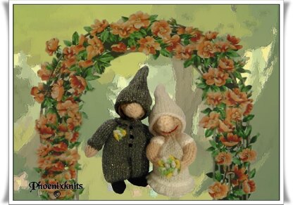 These two cute little gnomes are a nice quick and easy knit with no complicated stitches or shaping. Ideal for a wedding or anniversary gift.