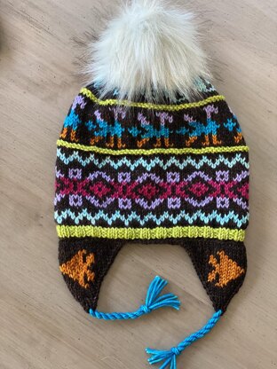The origins of Chullo hats goes back hundreds of years. In the Peruvian Andes, they are traditionally knit by men. I am not of Peruvian or Spanish origin & do not claim these to be authentic, but just a love letter to an ancient knitting tradition. After looking at hundreds of photos and many books, I have created my own knit “mashup” of color and shape inspired by these caps.