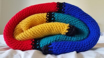 This blanket is made up of 24 knitted squares, knitted diagonally. Each one measures 30cm square (12 inch) and uses around ¾ of a 100g ball. You may need to increase or decrease the number of stitches depending on your tension and yarn. Including the border – this blanket measures 125cm x 185cm (50 inch x 72 inch).