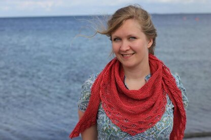 Brighton Beach is a shallow shawlette with an edging of airy lace, resembling shells or foaming waves. It is worked top-down, casting on all the stitches needed for the width of the shawlette. As the work progresses, stitches are decreased on either side, shaping the shawlette and making it go faster for every row!