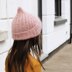 The use of a 4ply wool combined with a lace weight mohair makes this beanie warm yet light with just a touch of that much-loved, fluffy mohair halo.