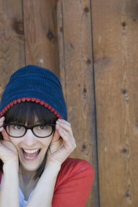 You’ve come to the right place. This hat features an oversized double-brim to really keep the wind out, complete with seamless hem and cheeky contrast picots. (For a more unisex look, work a purl round in place of the eyelet/picot round.) Also features an unusual decrease scheme and "Looks great with thick glasses" capabilities (just ask all my testers, who apparently also wear thick glasses! Haha.)