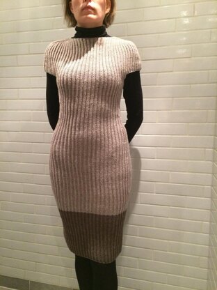 This dress was designed out of my fascination of the endless possibilities in using the very beautiful increasings and decreasings in brioche knitting. Not only to shape and make the great fit of this dress, but also to completely define the design.