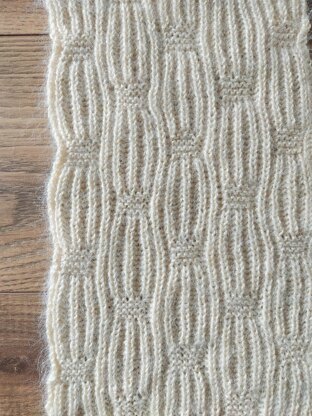 A beautiful brioche scarf which uses blocks of garter stitch to create a slightly wavy texture.