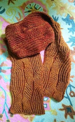 In the yarns shown here the scarf has a deeply textured and realistic “bark structure”, is very warm, and can be worn from both sides.