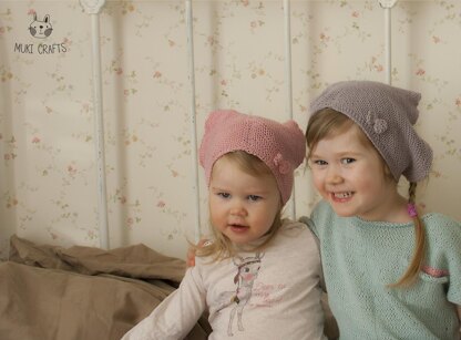 This beginner-friendly bandana pattern is designed to create a light and delicate summer accessory that is perfect for any girl's beach bag. The Brita kerchief features a knitted bow pattern that adds charm and style to the design.