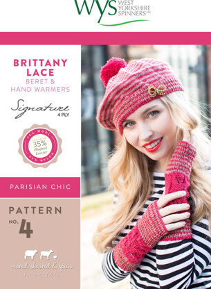 Brittany Lace Beret and Hand Warmers in West Yorkshire Spinners Signature 4 Ply - Downloadable PDF