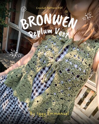 The Bronwen Peplum Vest is an adcanced/confident beginner and up, made to measure pattern to create a beautiful summer top. The pattern follows a top down continuous construction, which means there is no sewing involved.