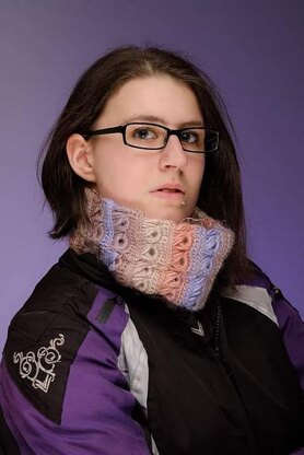 The neck warmer used a full 100g ball of King Cole Riot chunky. Check your tension if making with a substitute yarn.