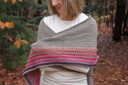 Brownfield Shawl is an asymmetrical triangle shawl with an all over texture pattern and simple lace border. The border can be worked either using multiple colors or with just one solid color. Instructions for both options are provided in the pattern.