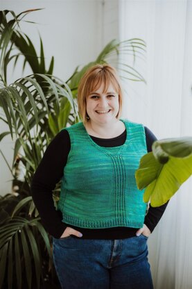 Bryony is a speedy slipover with half brioche stitch detailing adding a bit of visual – and knitting - interest.