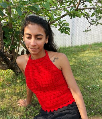 The Bubble Halter is a fun, simple and quick design which works up really fast and looks super cute! There is no seaming involved, and it uses only a few basic stitches making it a great beginner garment!