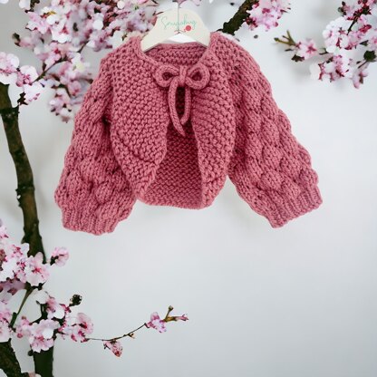 This beautiful bolero is one of my best sellers so I’ve written up the pattern to share! It knits up quickly, the bubble sleeves are fun to make and it’s finished off with an I-cord for a cute little bow at the front.
