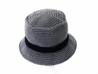 Hat needs to be worked fairly tight. Made from Medium Worsted Weight yarn, it can be made in cotton for summer or wool for winter. The design works up well in both. Hat Band can be worked into the hat or made separately. Have fun with embellishments, add a flower, a Bow. A hat band can be made using a narrow scarf.