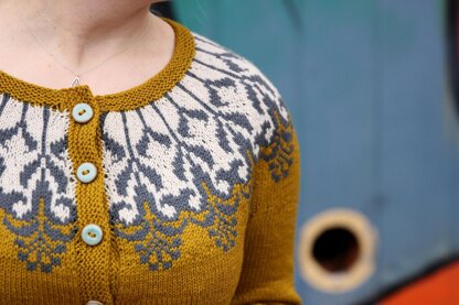 Budding is worked in the round and cut open at once finished. The pattern comes with instructions for a pullover mod.