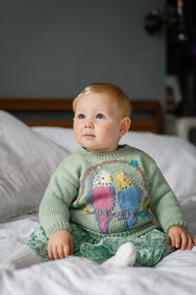 This adorable jumper uses a sweet intarsia design to create a design your little one is sure to love.
