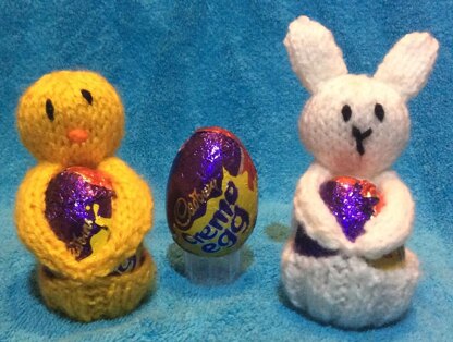 This gorgeous chick and bunny egg huggers knitting patterns are made for chocolate eggs. I have put a Creme Egg chocolate in the centre but any similar sweet or sweets could be used. This makes a stunning addition to your table, a fantastic fund raising item for fayres etc or great as a novelty decoration.