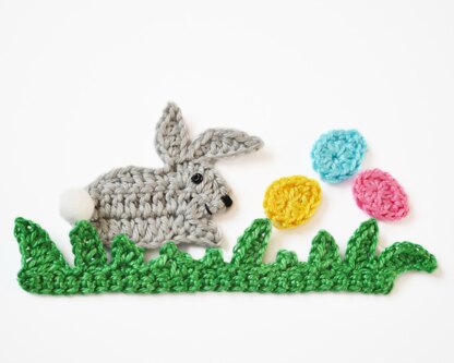 Bunny Applique. Rabbit on Grass. Crochet Spring Embellishment.